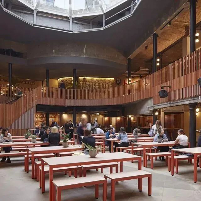 在曾經(jīng)用作儲(chǔ)存黃瓜和香蕉的Thomas Neal倉(cāng)庫(kù)打造24h營(yíng)業(yè)的Seven Dials美食市集。將整個(gè)市集劃分為倫敦專(zhuān)業(yè)生產(chǎn)商的室內(nèi)生產(chǎn)線的「黃瓜巷」和坐擁一系列著名街頭食品商鋪和餐廳的「香蕉倉(cāng)庫(kù)」,給古老的倉(cāng)庫(kù)賦予了新的生機(jī)。