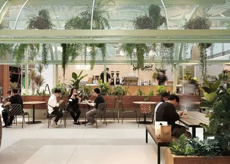 在舊址為南寧江南區(qū)絹紡廠的獨(dú)棟樓房里打造美食生活文創(chuàng)市集——烏瑪市集,重喚建筑的繁華。在6600㎡的空間內(nèi),利用美食、閱讀、花藝、手作等業(yè)態(tài)重現(xiàn)生活美好的情景。整體設(shè)計(jì)營(yíng)造東南亞國(guó)家的熱帶雨林風(fēng)情,80%的空間都能接受陽(yáng)光的沐浴,無(wú)處不在的鮮花、綠植環(huán)顧「野餐營(yíng)地」、「陽(yáng)光走廊」、「中國(guó)風(fēng)&異域風(fēng)情市集」、「美食小吃風(fēng)情街」等空間區(qū)域。