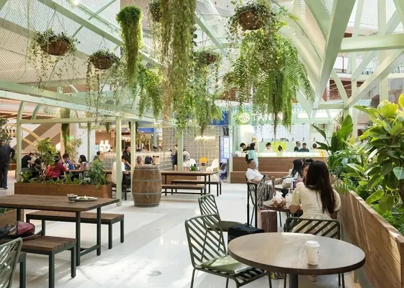 在購(gòu)物中心內(nèi)打造市集,將顛覆傳統(tǒng)餐飲模式,從“吃”的需求引入社交屬性,喚醒人們對(duì)自然和食物本源的集體記憶。瑞虹新城太陽(yáng)宮FOODIE SOCIAL 2.0南里食集坐擁25米挑高的5000㎡空間,目之所及皆有光與綠植,猶如一個(gè)有戶外感的美食空中村落。