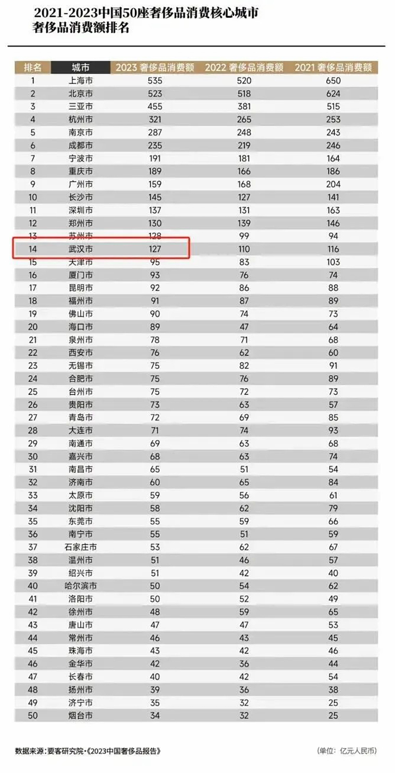 盡管SKP入駐武漢雄心勃勃,但仍面臨諸多挑戰(zhàn)。首要任務(wù)是深度挖掘武漢本地的奢侈品消費(fèi)潛力,盡管這座城市對(duì)新興事物展現(xiàn)出高度興趣,但奢侈品消費(fèi)文化的培育尚需時(shí)日。據(jù)要客研究院《2023中國(guó)奢侈品報(bào)告》揭示,武漢在奢侈品消費(fèi)領(lǐng)域的表現(xiàn)尚屬中游,2021至2023年間消費(fèi)額位列全國(guó)第14,2023年具體消費(fèi)額達(dá)127億元,這一成績(jī)不及華中區(qū)域內(nèi)的鄭州,亦落后于同級(jí)別的新一線城市成都與長(zhǎng)沙,彰顯了SKP在武漢市場(chǎng)擴(kuò)展的艱巨性與必要性。