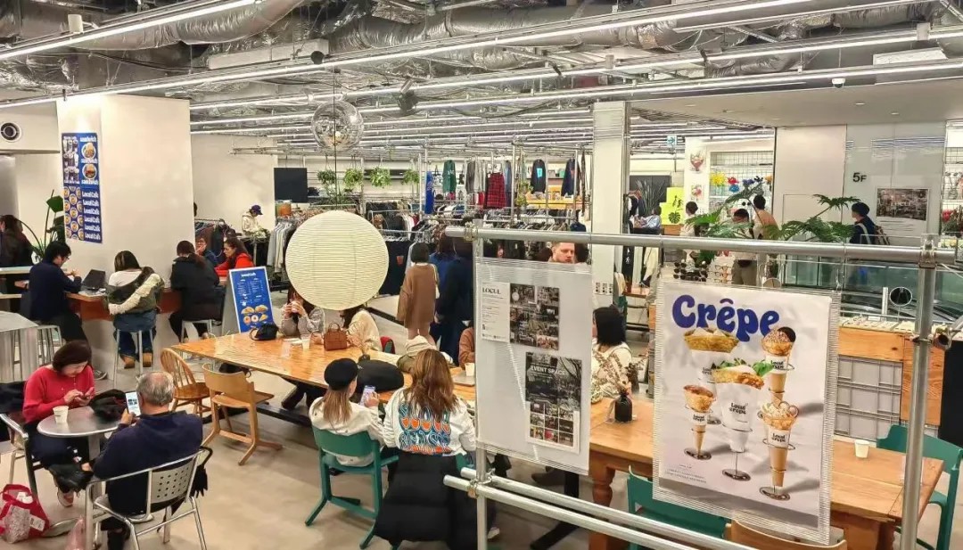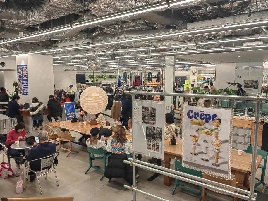 在東京的一座Tokyu Plaza中,就見到其舍棄半層經(jīng)營面積,打造出公共休閑空間。當(dāng)然,所謂“舍棄”也并非完全屏蔽零售商品售賣,只是有取舍地將更能豐富消費(fèi)者游逛體驗(yàn)的特定零售品類包羅其中。這些商品或品牌的陳列更像是美陳道具,沒有出跳的展柜與收銀臺(tái),總能讓進(jìn)場(chǎng)顧客在不經(jīng)意間隨手拿起挑選。