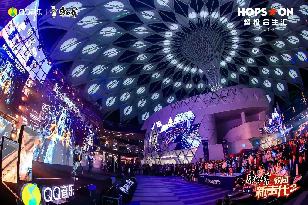 亦可發(fā)揮“穹頂廣場(chǎng)”強(qiáng)大的可塑性舉辦各類新消費(fèi)場(chǎng)景主題活動(dòng),例如前不久與QQ音樂、康師傅聯(lián)合舉辦“校園新生代第二季-北區(qū)半決賽”,錨定Z世代年輕客群,以線上線下多渠道宣發(fā)的推廣方式,穹頂之下,北京超極合生匯以音樂和運(yùn)動(dòng)為基調(diào)引爆全城熱點(diǎn),打造現(xiàn)象級(jí)營(yíng)銷活動(dòng),當(dāng)日全場(chǎng)客流較平日提升50%,帶動(dòng)場(chǎng)內(nèi)銷售環(huán)比提升20%。