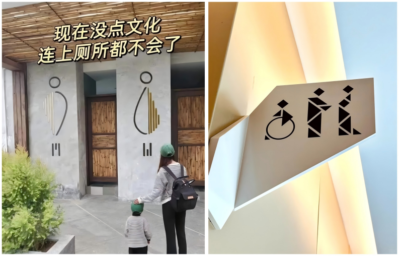 大家都可以玩兒抽象,但也不能太抽象。比如長(zhǎng)期被大家吐槽的“上廁所之前要做個(gè)閱讀理解”的男女衛(wèi)生間抽象標(biāo)識(shí),難免讓消費(fèi)者感覺設(shè)計(jì)師有些“自嗨”,而并未滿足洗手間應(yīng)便于尋找的基礎(chǔ)功能需求。