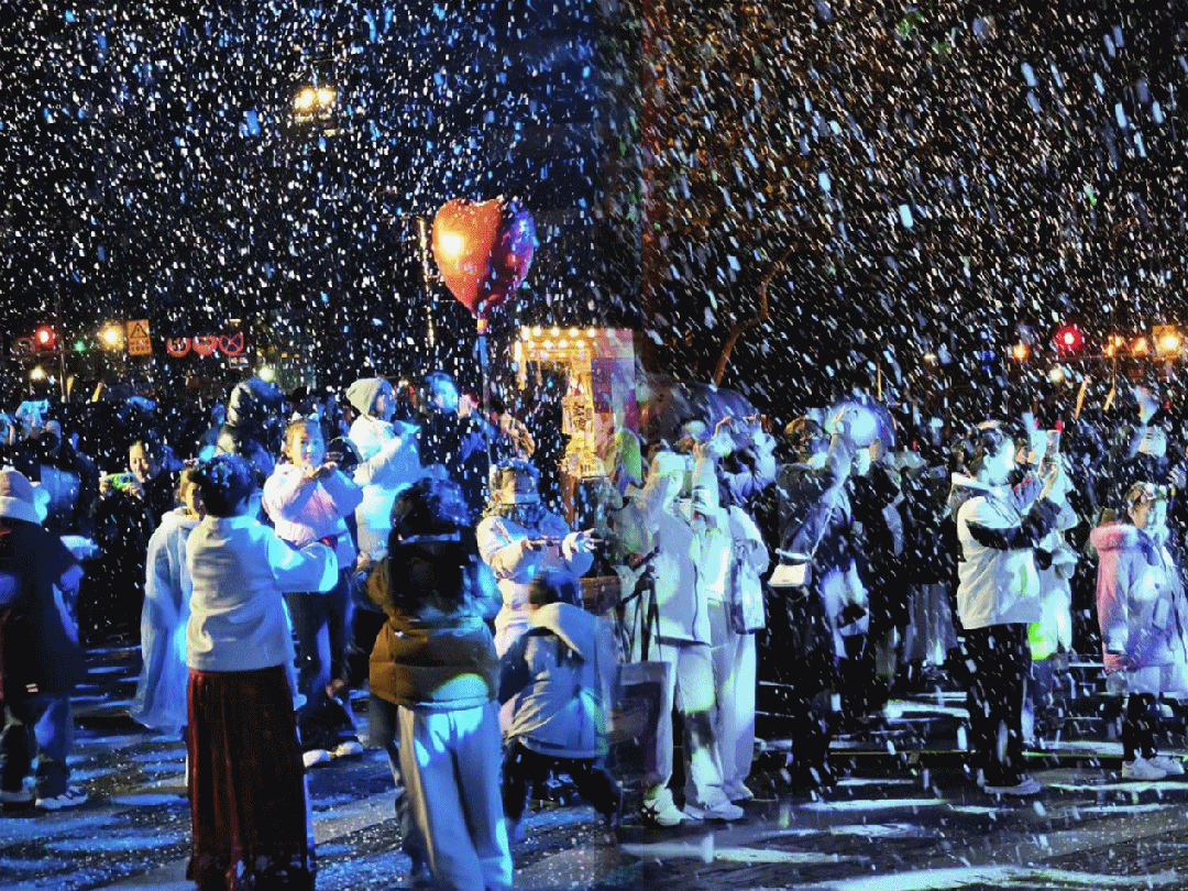 今年的活動現(xiàn)場,不僅延續(xù)了去年打鐵花表演的璀璨精彩,更新添了4場鐵韻流光的火壺表演,浪漫的“冬季飄雪”活動,年味十足的好運“妙”會、豐富的兒童表演以及萬眾期待的整點抽獎等活動。非遺的火花點燃新年的希望與夢想,為家門口帶來一場精彩紛呈的迎新狂歡派對,吸引了上萬名鄰居前來同歡共慶。